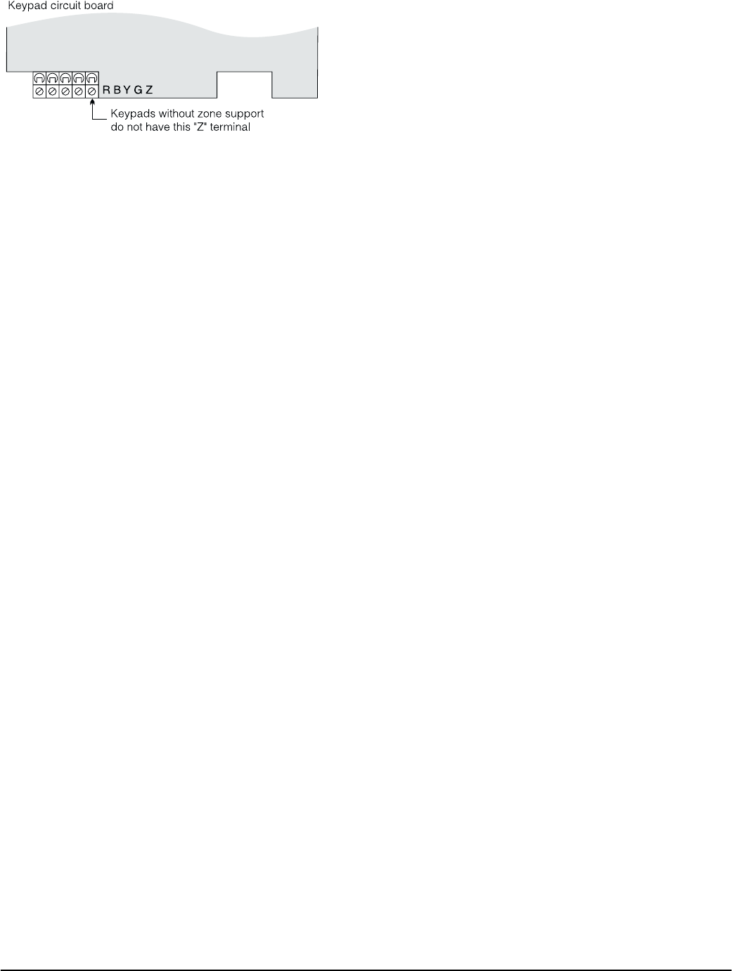 NOTE: Keypad zones 1-6 will replace zone terminals Z1-Z6 on