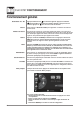 DSA1007BT FONCTIONNEMENT Fonctionnement général Menu de Configuration Dans l'écran du Menu principal, appuyez sur SETUP dans le coin en bas à gauche pour accéder au menu de configuration. Sélectionnez l'une des sept icônes dans la partie supérieure (Général, Heure, Langue, Audio, Vidéo, Tuner et Étalonnage) pour accéder au sous-menu correspondant à cette catégorie.
