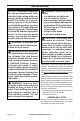 TROUBLESHOOTING Problem Possible Cause Corrective Action ODS/pilot lights but flame 1. Control knob is not fully 1. Press in control knob fully. goes out when control pressed in. knob is released. 2. Control knob is not pressed 2. After ODS/pilot lights, keep in long enough. control knob pressed in 30 seconds. 3. Equipment shutoff valve is 3. Fully open equipment shutoff not fully open. valve. 4. Thermocouple connection is 4. Hand tighten until snug, and loose at control valve.