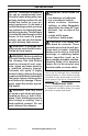 TROUBLESHOOTING Problem Possible Cause Corrective Action When ignitor button is 1. Ignitor electrode is posi- 1. Replace electrode. pressed in, there is no tioned wrong. Ignitor elecspark at ODS/pilot. trode is broken. 2. Ignitor electrode is not con- 2. Replace ignitor cable. nected to ignitor cable. 3. Ignitor cable is pinched or 3. Free ignitor cable if pinched wet. by any metal or tubing. Keep ignitor cable dry. 4 Broken ignitor cable. 4. Replace ignitor cable. 5. Bad piezo ignitor. 5.