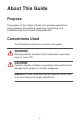 About This Guide Purpose The purpose of this Owner’s Guide is to provide explanations and procedures for installing, operating, maintaining, and troubleshooting the Duracell® Powerpack 300. Conventions Used The following conventions are used in this guide. WARNING Warnings identify conditions that could result in personal injury or loss of life. CAUTION Cautions identify conditions or practices that could result in damage to the product or to other equipment.