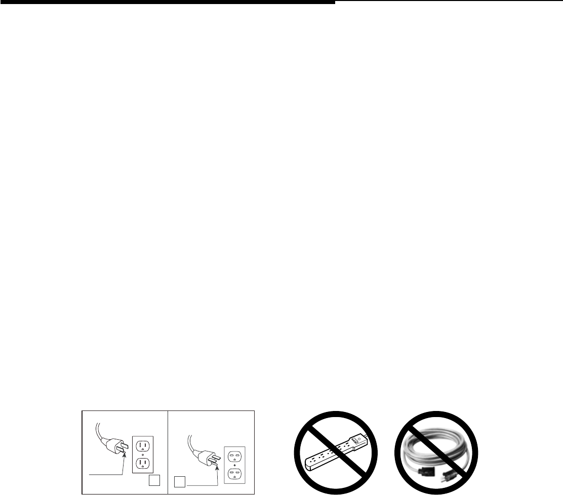 prong adapters. Never use with an extension cord or relocatable power tap (outlet/power strip).