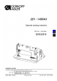 1. SPECIFICATIONS 251-140040 Application 251-140040 A For medium-weight materials 251-140040 H For light-weight materials For heavy-weight materials Sewing speed Max. 5,000 rpm Max. 4,000 rpm Max. 4,000 rpm Stitch length Max. 5 mm Max. 4 mm Max. 5 mm Needle DBx1#9to#18(134#65to#llO) Presser foot lift (by knee lifter) 10 mm (Standard)13 mm (Max.) Lubricating oil Noise DBx1#9to#11(134#65to#75) DBx1#20to#23(134#125to#160) 9 mm (Max.) 10 mm (Standard) 13 mm (Max.