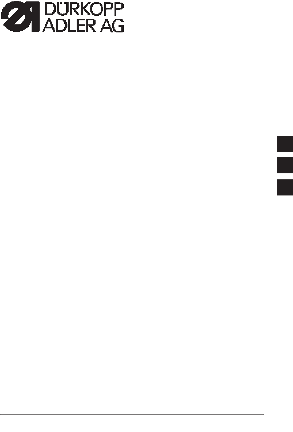 367 Spezialnähmaschine Bedienanleitung Operating Instructions Instructions de maniement Postfach 17 03 51, D-33703 Bielefeld • Potsdamer Straße 190, D-33719 Bielefeld Telefon +49 (0) 5 21/ 9 25-00 • Telefax +49 (0) 5 21/ 9 25 24 35 • www.duerkopp-adler.com Ausg./Edition: 12/04 Printed in Federal Republic of Germany Teile-/Part-No.