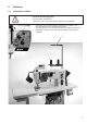 6.7 Greiferfadenspannung voreinstellen 2 1 4 3 Vorsicht Verletzungsgefahr ! Hauptschalter ausschalten. Greiferfadenspannung nur bei ausgeschalteter Maschine einstellen. Bremsfeder Die Bremsfeder 1 verhindert bei Maschinenstopp und beim Abschneiden des Greiferfadens ein Nachlaufen der Spule und kann nicht verstellt werden! Spannungsfeder einstellen – Das Spulengehäuseoberteil 2 soll bei voller Spule durch sein Eigengewicht langsam absinken (siehe rechte Abbildung).