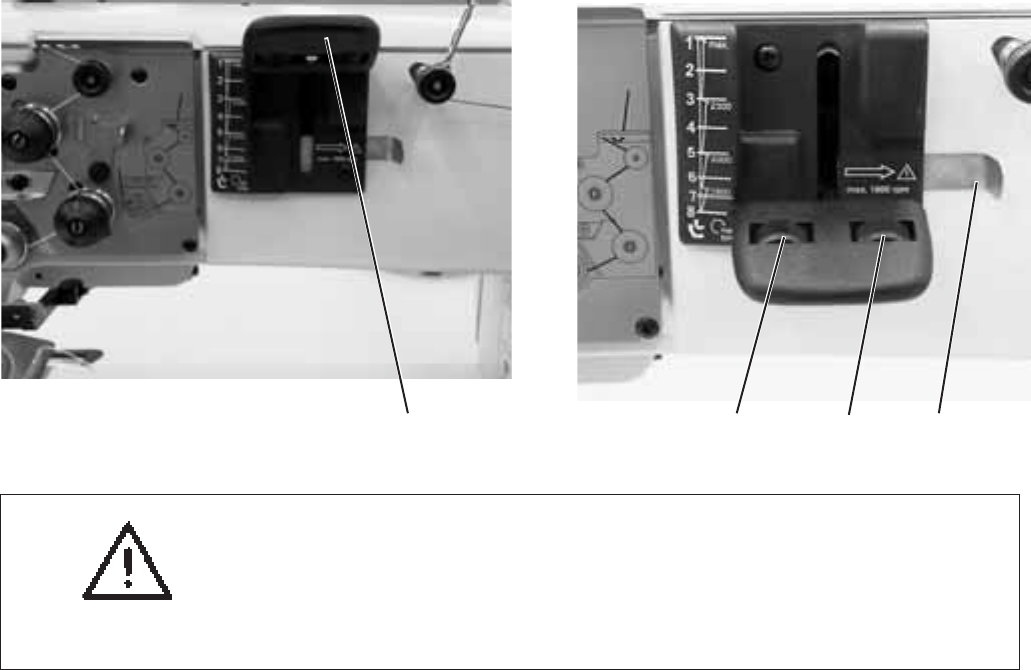 Bei betätigtem Schieber 6, darf nur mit verminderter Drehzahl genäht