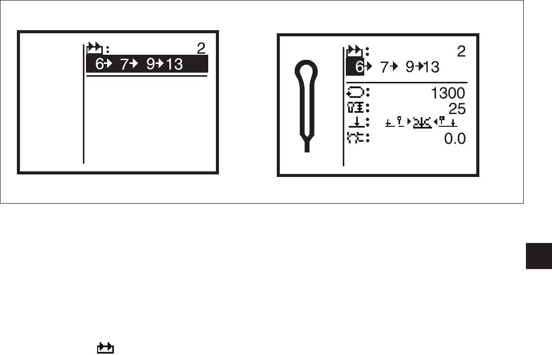 Use the ñ and ò cursor keys to select a buttonhole sequence.