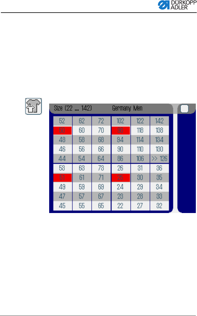 • Die momentan gewählte Größe ist mit einem Doppelpfeil