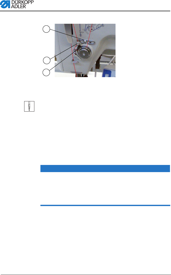 2. Position des Fadenregulators (2) verändern.