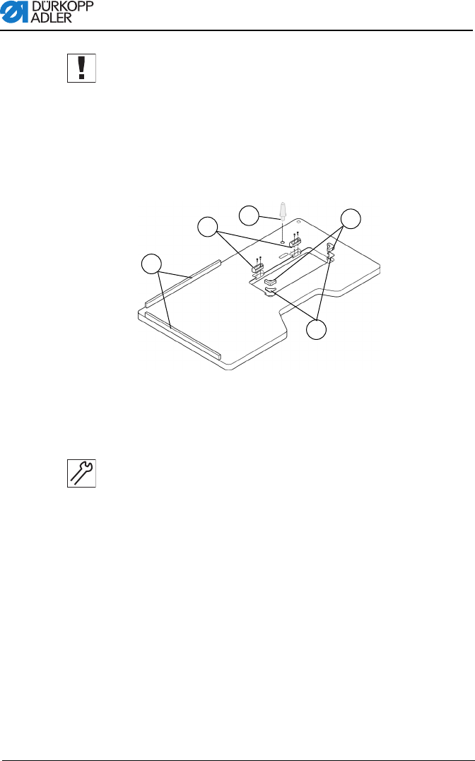 2. Gummiecken (1) in die Tischplatte einsetzen.