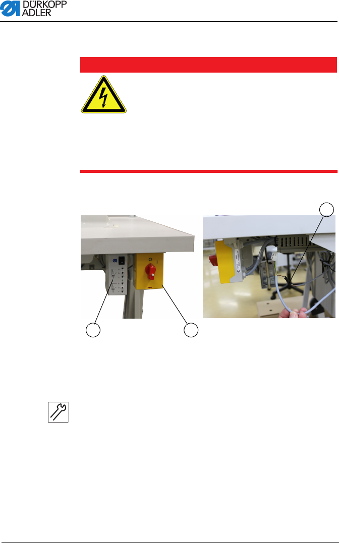 1. Nählichtsteuerung (1) neben dem Hauptschalter (2) montie-