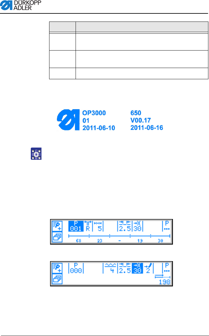 • Rechts im Bildschirm die Software-Version der Steuerung