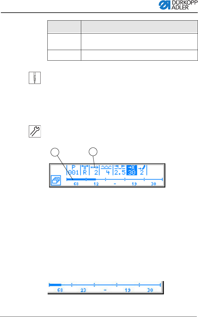 Der Programm-Balken (1) zeigt den Fortschritt der Naht an.