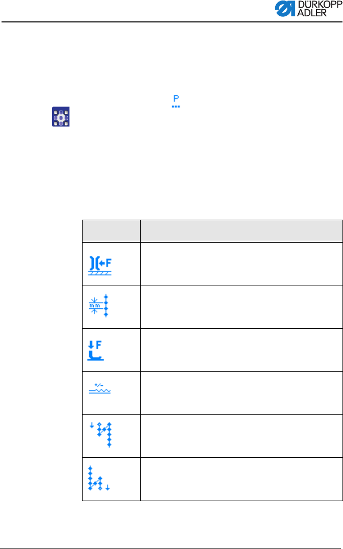 In diesem Menü können weitere Parameter für das aktuelle Naht-