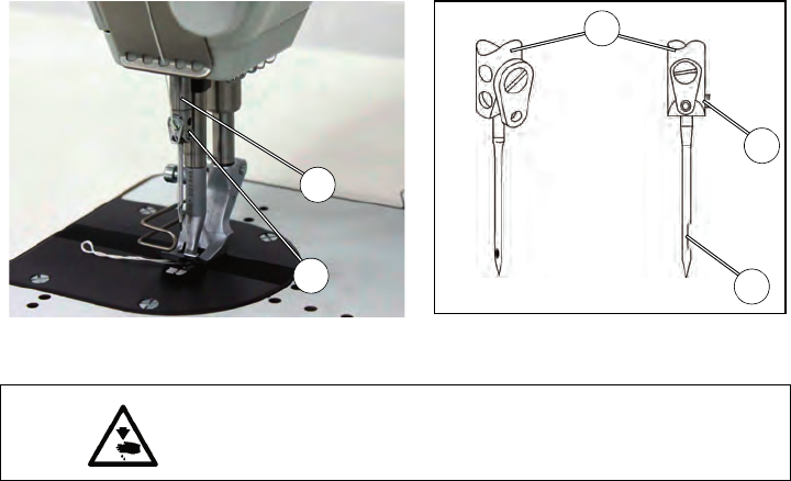 – Neue Nadel bis zum Anschlag in die Bohrung der Nadelstange 1