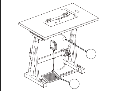 – Der Nähfuß kann mechanisch durch Betätigen des Kniehebels 1 gelüftet