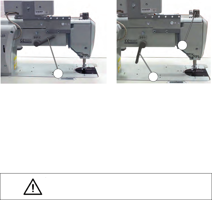 – Die Nähfüße pneumatisch oder mit dem Kniehebel lüften.