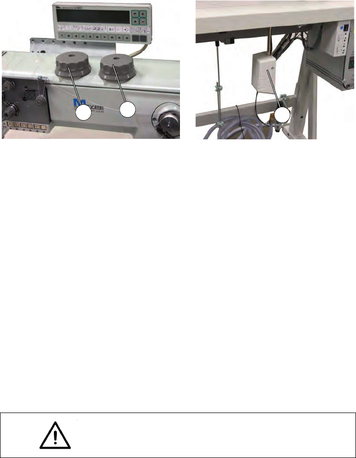 Mit dem rechten Stellrad 1 wird ein erhöhter Nähfußhub von 1 bis 9 mm