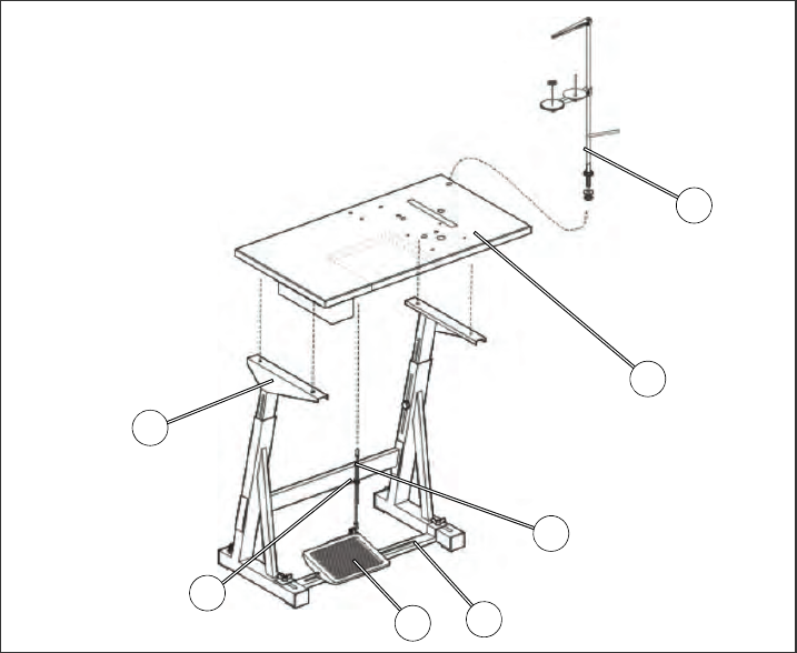 – Gestell 7 mit Holzschrauben (6x30) auf der Tischplatte 2 befestigen.