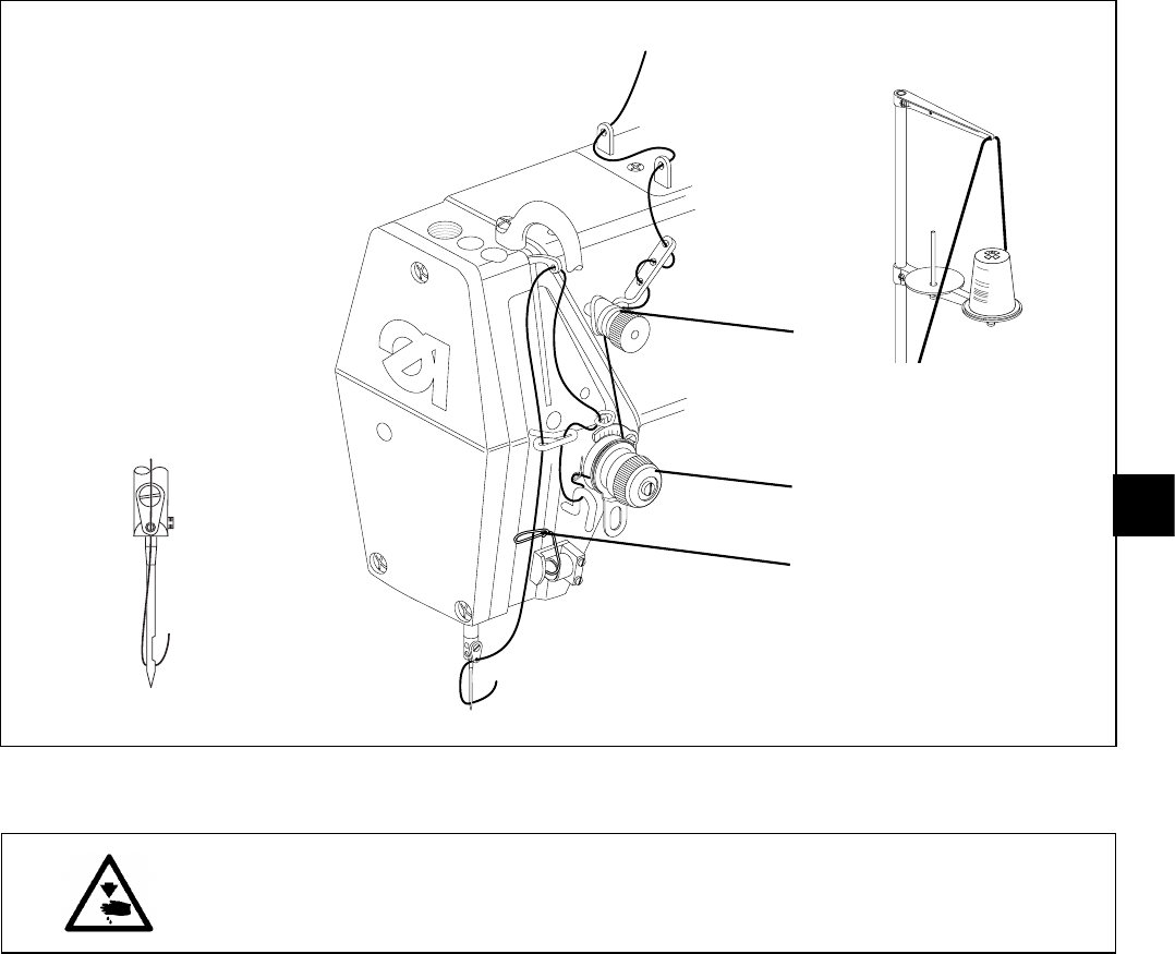 Nadelfaden nur bei ausgeschalteter Nähanlage einfädeln.