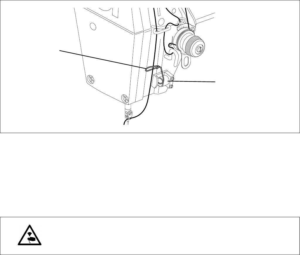 Nach einem Riß des Nadelfadens fällt die Fadenöse 1 herunter.