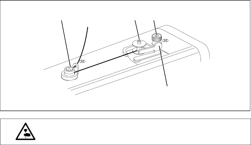 Fadenende durch Schneidklemme 3 ziehen und abschneiden.