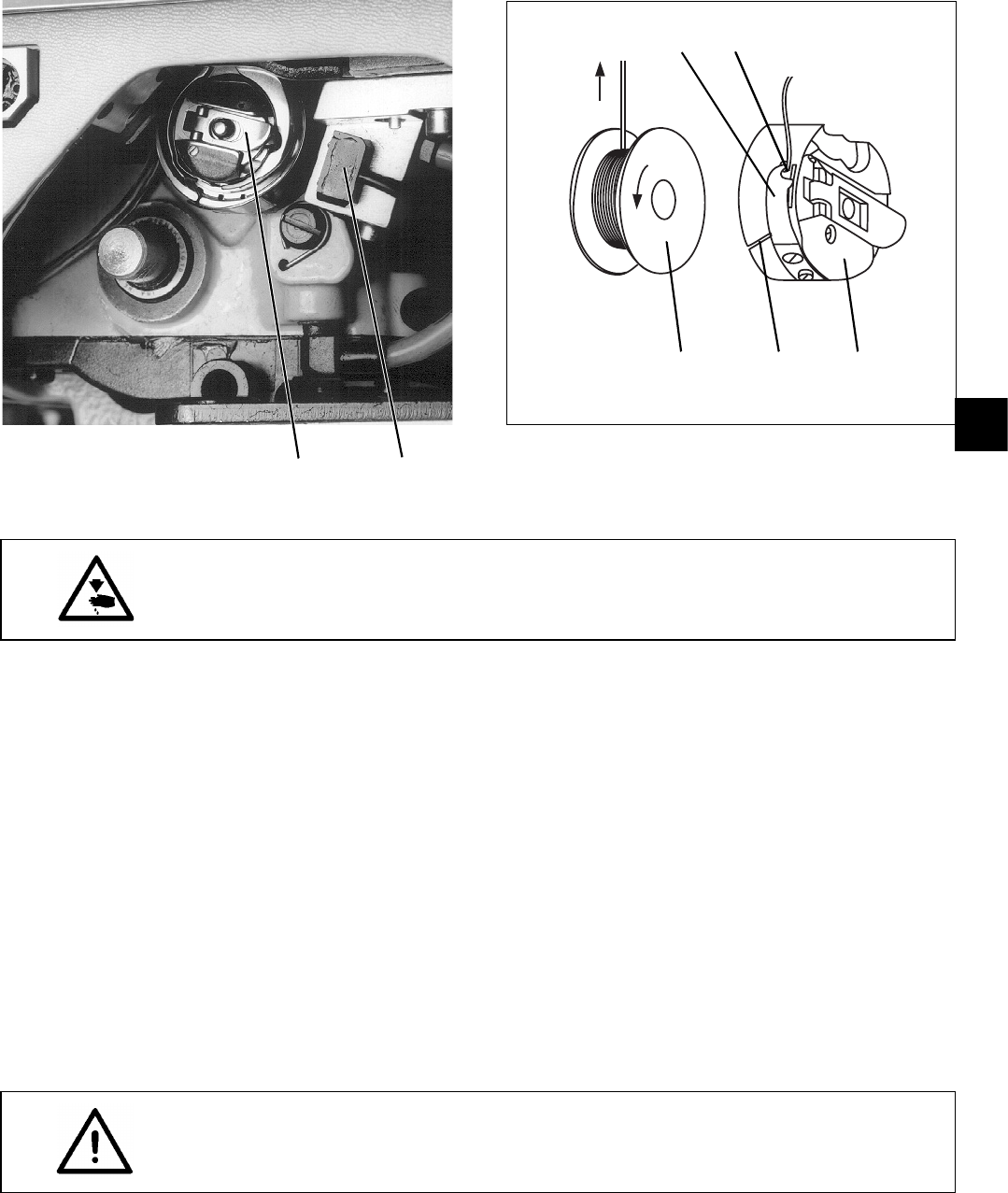 Greiferfadenspule nur bei ausgeschalteter Nähanlage wechseln.