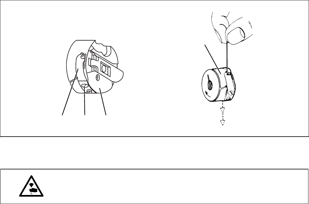 Spule in Spulengehäuseoberteil 1 einlegen und Greiferfaden