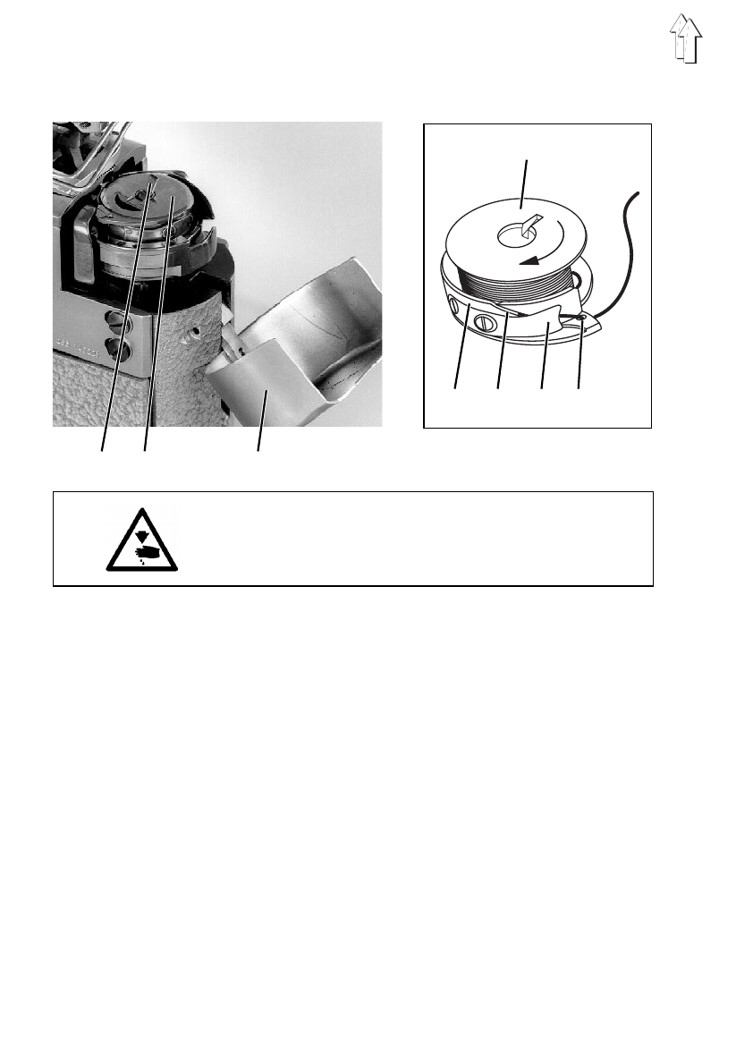 Enfiler le fil dans la partie supérieure du boîtier de canette 2 à travers le trou 7.