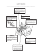 SAFETY DEVICES Safety devices herein described may differ in accordance with the destination and specifications. Eye guard cover A cover to prevent the injury to the eyes, the head or the like due to the dispersion of components such as the broken needle. Safety label Finger guard A cover to prevent the injury due to the contact of fingers with the needle . Cautions on safety are described. Belt cover A cover to prevent the hands, the fingers and the clothes from being caught with the V belt.