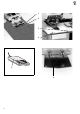 6.1.2 Bobiner le fil de crochet 3 4 1 5 2 – – – – – 6.1.3 Appuyer sur la touche "O". La fonction "Arrêt sûr des moteurs" sera activée. Enfiler le fil de crochet comme indiqué dans le dessin ci-dessus et enrouler le fil de crochet autour du noyau de la canette. Pousser le levier (1) contre la canette. Le bobinage se fera pendant la couture et sera terminé, dès que la canette sera remplie. Pour couper le fil se servir de la pince coupante (2). Appuyer sur la touche "I".