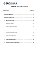 TABLE OF CONTENTS SECTION PAGE PRODUCT SAFETY . . . . . . . . . . . . . . . . . . . . . . . . . . . . . . . . . . . . 1 PRODUCT LIABILITY. . . . . . . . . . . . . . . . . . . . . . . . . . . . . . . . . . . 1 1.0 INTRODUCTION. . . . . . . . . . . . . . . . . . . . . . . . . . . . . . . . . . . 2 2.0 SPECIFICATIONS. . . . . . . . . . . . . . . . . . . . . . . . . . . . . . . . . . 3 3.0 PACKAGE CONTENTS. . . . . . . . . . . . . . . . . . . . . . . . . . . . . . 5 4.0 CONNECTING THE HARDWARE. . . . . .