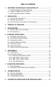 TABLE OF CONTENTS 1. UNPACKING THE DMF MASS FLOW CONTROLLER........................1 1.1 Inspect Package for External Damage.............................................. 1 1.2 Unpack the Mass Flow Controller....................................................... 1 1.3 Returning Merchandise for Repair.....................................................1 2. INSTALLATION.................................................................... 1 2.1 Primary Gas Connections..........................................