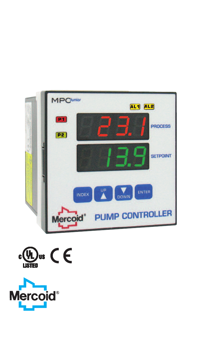 Bulletin L-21 Series MPCJR Pump Controller Installation and Operating Manual MERCOID A Division of Dwyer Instruments, Inc. P.O. BOX 258 • MICHIGAN CITY, INDIANA 46361, U.S.A. Phone: 219/879-8000 • Fax: 219/872-9057 www.dwyer-inst.com • e-mail: lit@dwyer-inst.com FR# M1-443341-00 Rev.