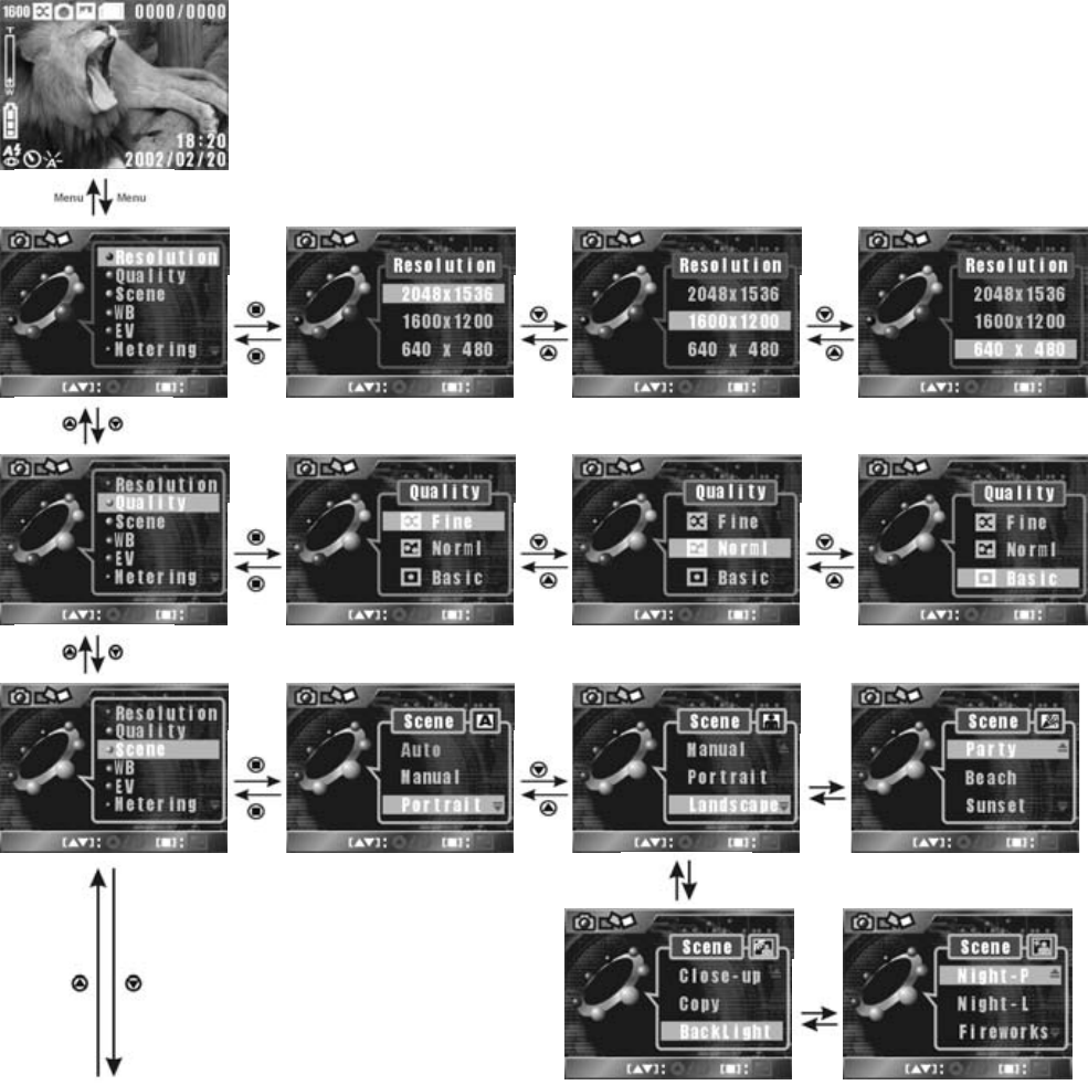 In Still mode, press the MENU button to show/hide the Still setup menus.