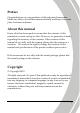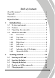 Table of Contents About this manual............................................................. v Copyright........................................................................... v Precautions ...................................................................... vi Before You Start .............................................................viii 1 Introduction ................................................ 1 1.1 1.2 1.3 1.4 2 System requirements...............................................