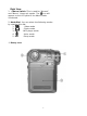 Back View: 1. 4-Way Multi-function Button-In all modes, this selects directions such as Up, Down, Left, Right and other special functions. 2. Shutter Button- Press to take pictures in Capture mode, and to start & stop recording videos or voices in Video or Voice mode. 3. Dual Color LED (Power LED/Busy LED)-When the digital video camera is turned on, the LED will turn green. When the digital video camera is busy, the LED will turn red. 4.
