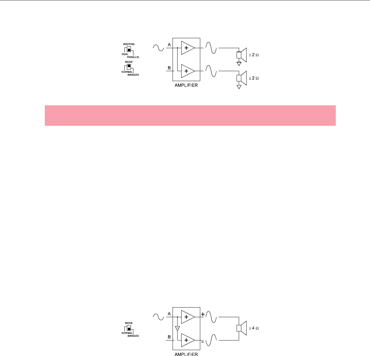 En mode BRIDGED, l’amplificateur de puissance fonctionne en mono sur un seul canal. Si le sélecteur est