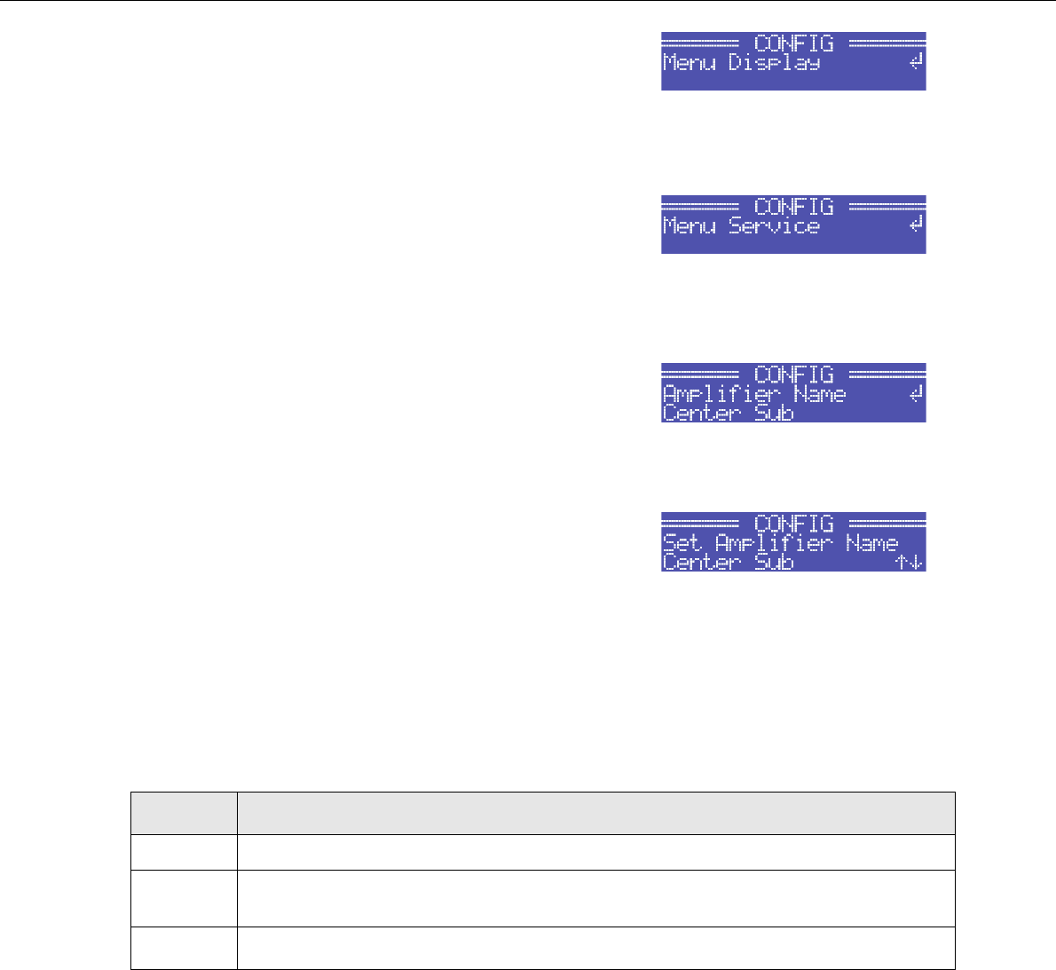 CONFIG/Amplifier Name: Affiche le nom de l’amplificateur de