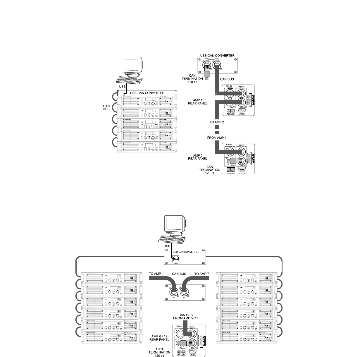 l'ampli de puissance 6 (première unité du bus) et sur l'ampli de puissance 12 (dernière unité du bus)