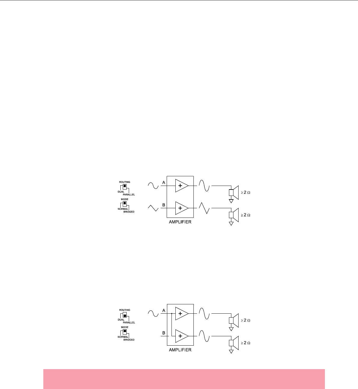 The ROUTING switch on the power amp’s rear panel defines how the audio inputs handle the input