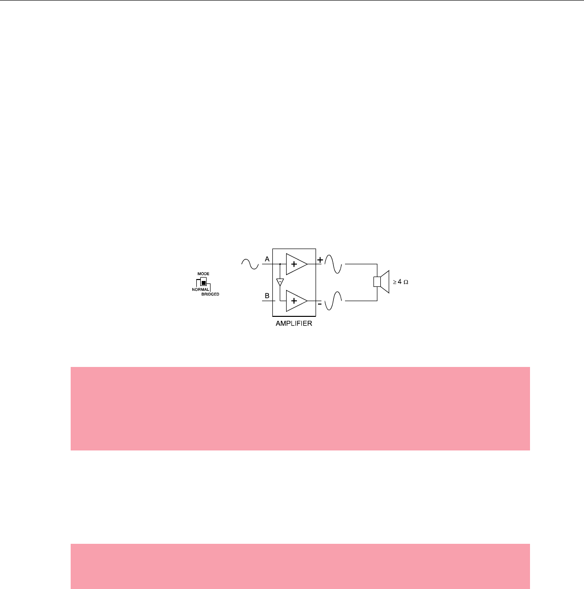 In BRIDGED mode, the power amplifier functions as single-channel, monaural power amp. If the switch is