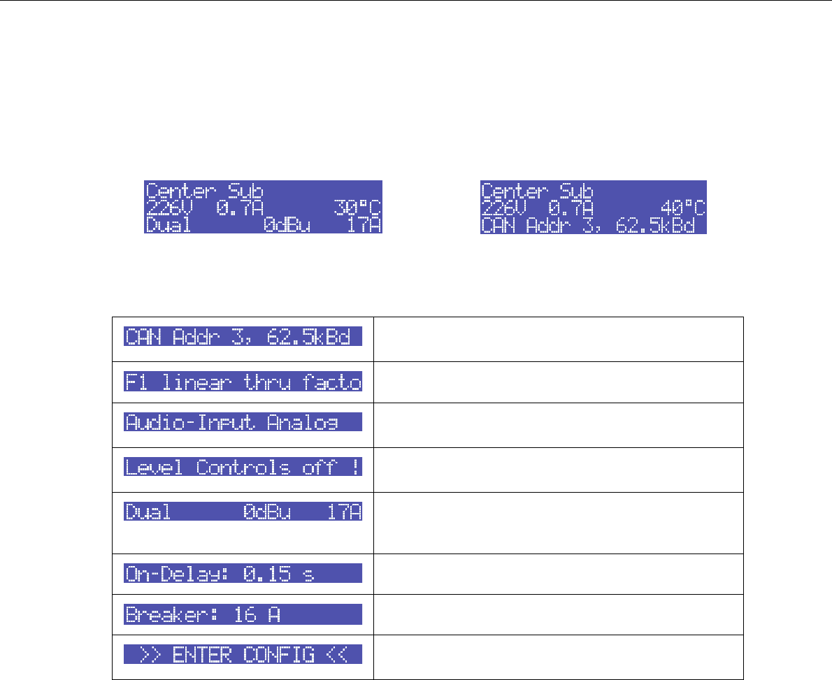 display appears after a few seconds. The top line always shows the name of the power amplifier. An
