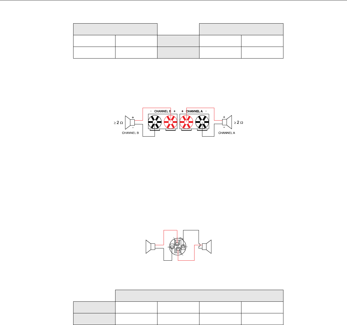 Tabelle 2.6: Bi-Amp-Lautsprecheranschluss in Betriebsart NORMAL nur an Speakon A