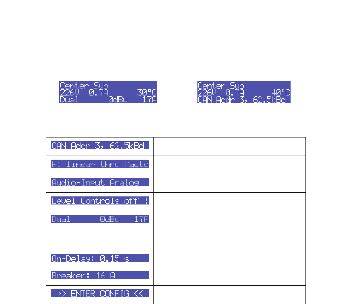 wird immer die Bezeichnung der Endstufe angezeigt. Die zweite und dritte Zeile liefert einen Überblick
