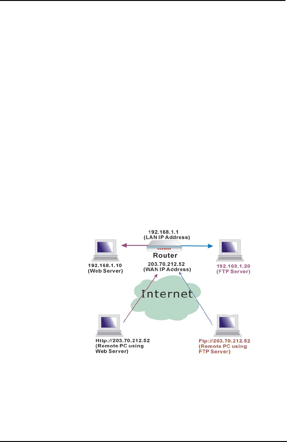 The Virtual Server feature solves these problems and allows Internet users to