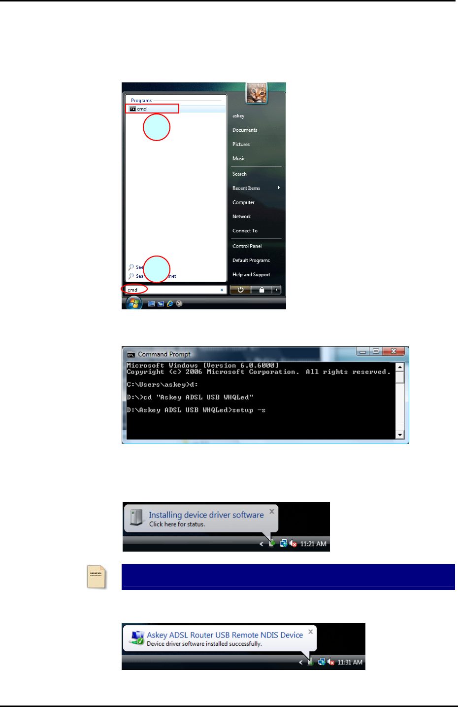 our example, the driver files are put under D:\Askey ADSL USB WHQLed.)