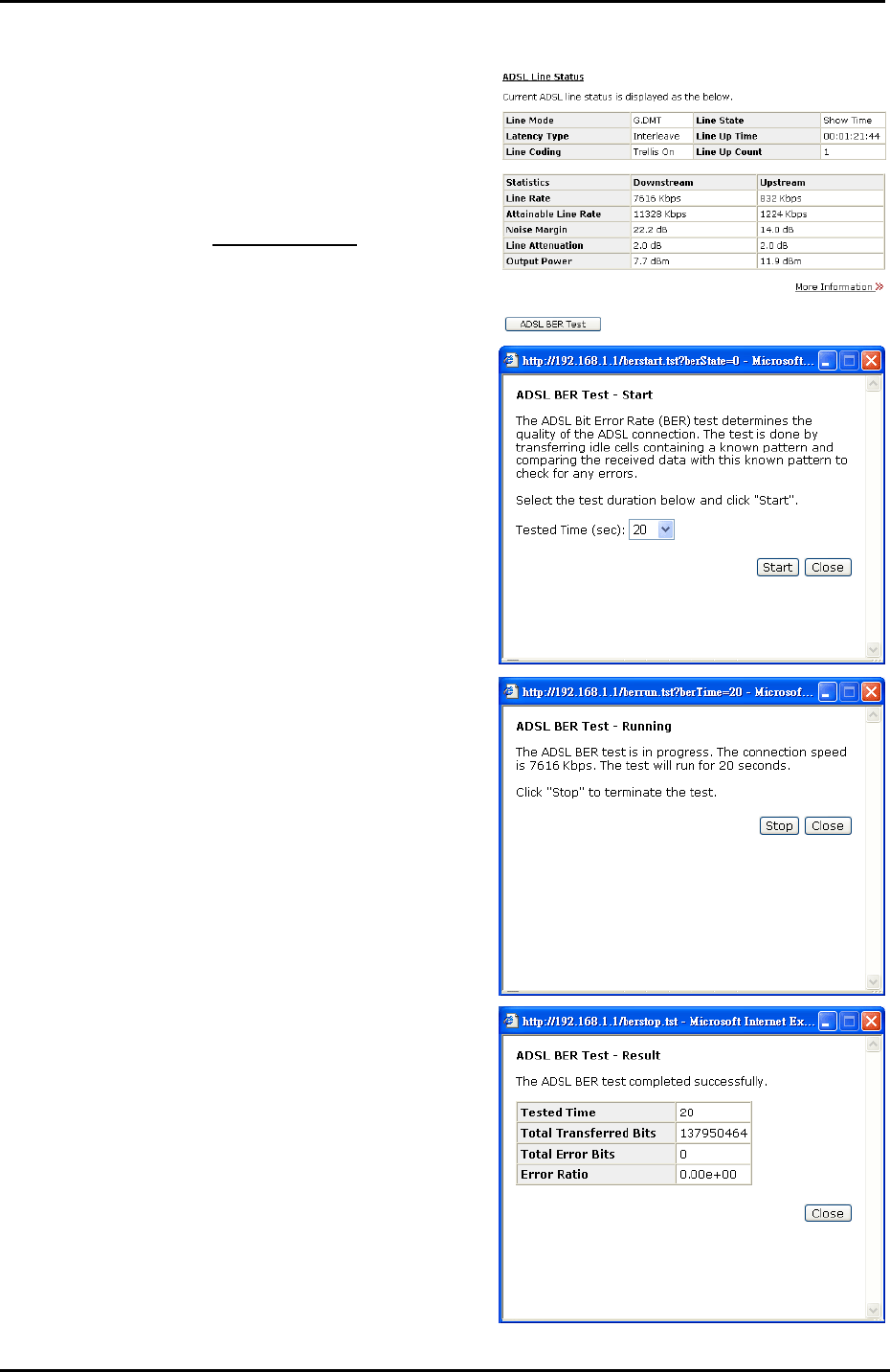 connection, please click ADSL BER