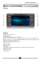 Basic Operation Description of functions at the front panel DVN-E39 1, DISK Input. 2, BAND: radio-band conversion. 3, RADIO: Radio mode. 4, Radio station select. 5, SRC: different functions for switch mode. 6, NAVI: GPS menu. 7, Power switch/Volume: Press it by 3s to power off. Press it one time for switching from Btightness,Contrast, Color, BASS,TREBLE,MIDDLE adjustment . Rotating for volume increasing/decreasing. Press it one time for power on 8, Reset button.