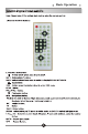 Basic Operation Functional description of remote controller 1. : Power key. 2. MOD: switch mode. 3. : DVD load in and out. 4. : Mute ON/OFF. 5. AMS: browse function at radio mode, auto search at TV mode. 6. PU/LOC: Set up local/remote search under radio mode. 7. ST: Set up stereo/mono under radio mode. 8. BAND: Band FM1/FM2/FM3/AM1/AM2; AUTO/NTSC/PAL system switch at DVD; System switch at TV. 9. VOL-: Decrease volume. 10.